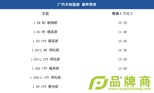 编辑从厦门车市了解到前广汽丰田雷凌已经公布,售价新车将于7月28日正式上市,并将在明年推出混合动力车型颜色可选,兴趣的朋友可以到店咨询购买,详情见下表:www.PinPaiShang.Com 中*国品牌*网