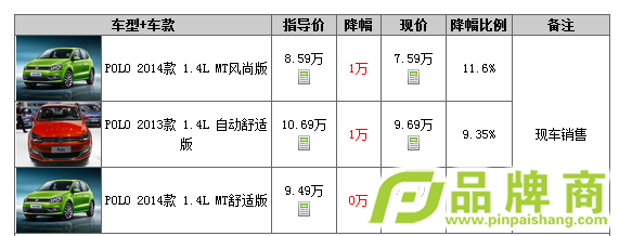 近日,小编从天津当地一家上海大众汽车经销商处了解到,目前店内上海大众POLO现车销售,购2014款POLO现金优惠1万元,对此车感兴趣的朋友们欢迎到店详细咨询,惊喜多多哦!下面小编为大家介绍了2014款POLO的一些基本情况www.PinPaiShang.Com 中*国品牌*网